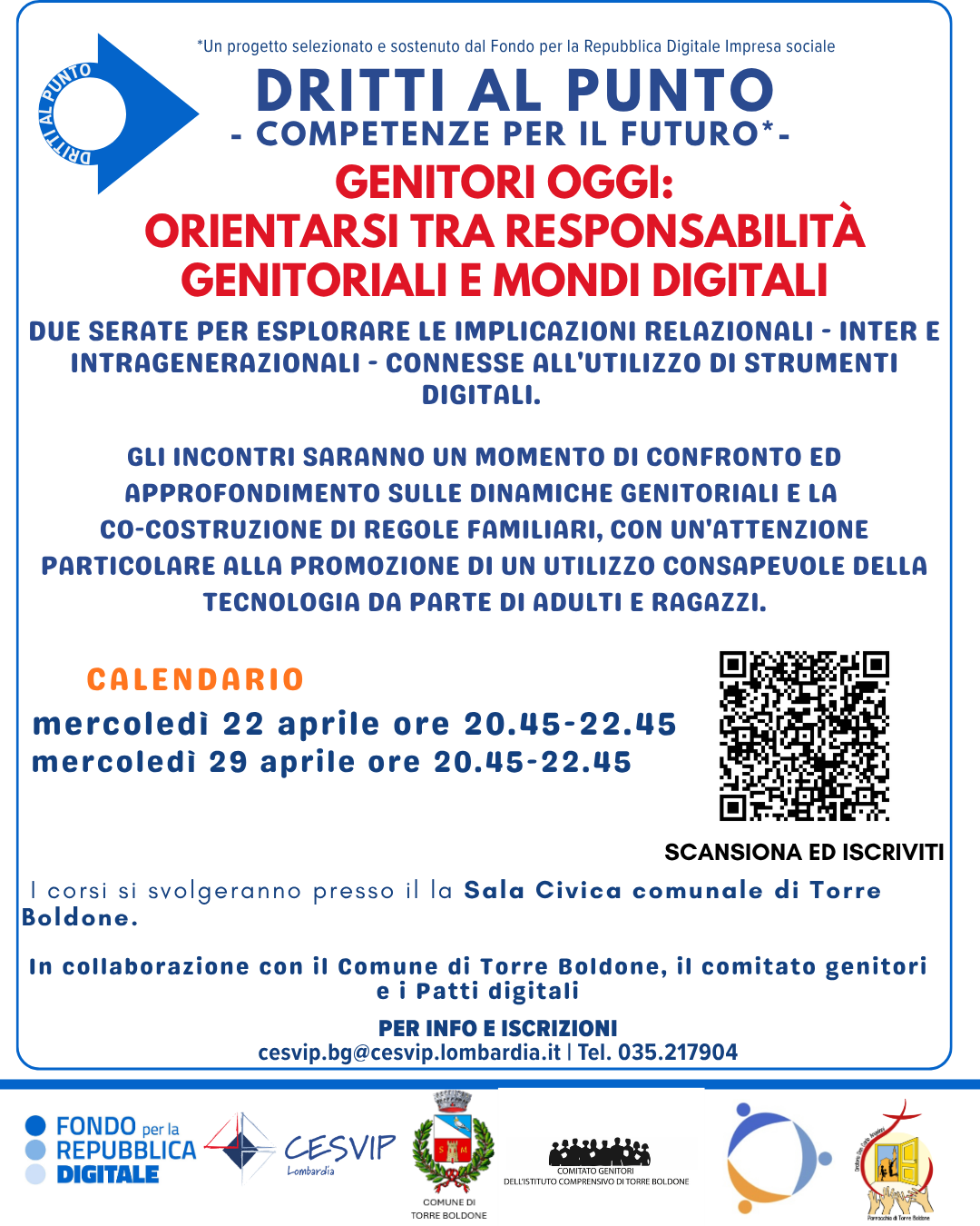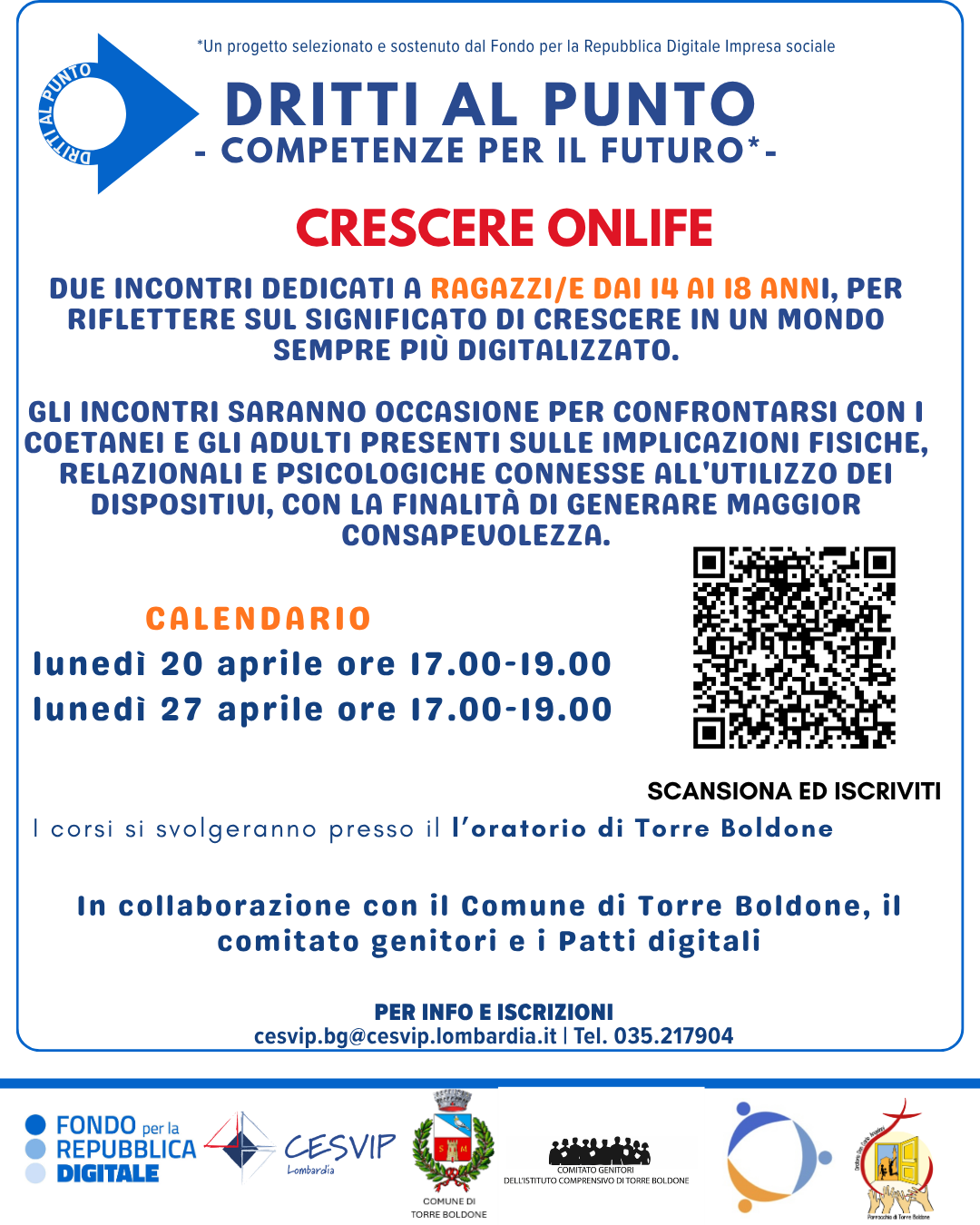 Ciclo di iniziative formative sui temi della consapevolezza digitale, rese possibili dalla collaborazione fra Comune di Torre Boldone, CESVIP, Comitato genitori, Gruppo patti digitali e Oratorio.