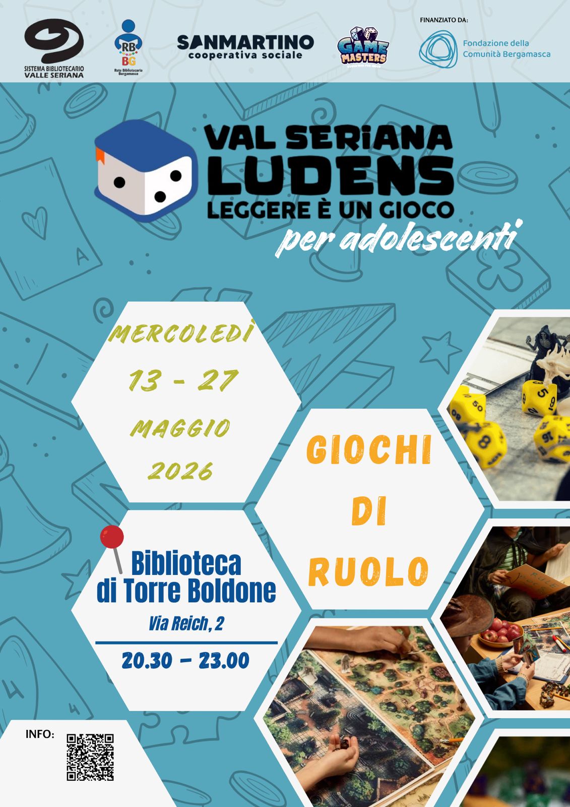 Prende il via «Val Seriana Ludens - Leggere è un gioco», il ciclo di appuntamenti di giochi da tavolo e di ruolo in biblioteca, promosso dal Sistema Bibliotecario Valle Seriana, in collaborazione con la Cooperativa San Martino Progetto Autonomia e con il sostegno della Fondazione della Comunità Bergamasca.