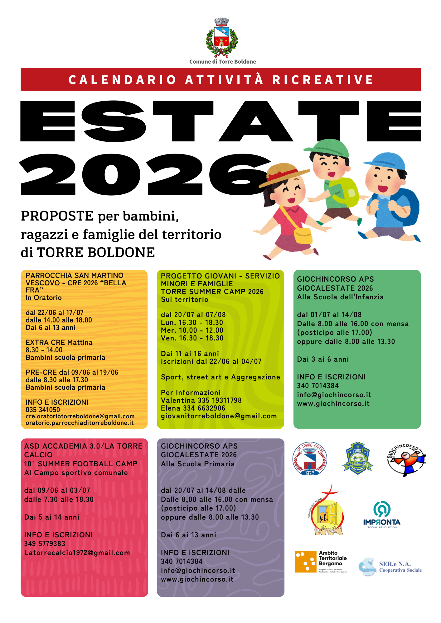 Il Comune di Torre Boldone coordina una rete di soggetti che promuovono offerte estive per bambini e ragazzi.